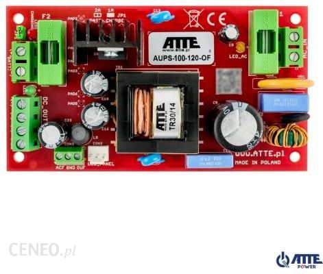 Zasilacz buforowy SMPS 12V, Vin 230VAC, Vout 10,2 …13,8VDC, Iout 8A, Ich 1 / 2A, Pout 100W, moduł do zabudowy, typu AUPS-100-120-OF Najważniejsze cechy: kompletne rozwiązanie zasilania urządzeń CCTV w małogabarytowej obudowie centralne buforowanie zasilania długi czas podtrzymania zasilania w porównaniu z klasycznymi systemami wykorzystującymi zasilacze UPS niskie nagrzewanie wnętrza obudowy dzięki wysokiej sprawności zasilacza łatwy montaż w obudowach posiadających otworowanie systemowe w rastrze 10,8 mm Urządzenie jest zasilaczem buforowym przeznaczonym do zasilania urządzeń systemów telewizji przemysłowej CCTV lub systemów kontroli dostępu. Urządzenie jest wygodnym rozwiązaniem problemu buforowego zasilania kamer i innych urządzeń monitoringu wymagających bezprzerwowego zasilania. Zasilacz pozwala na tworzenie rozproszonych systemów monitoringu z centralnym buforowanym zasilaniem. Układy są przystosowane do pracy z akumulatorami kwasowo-ołowiowymi lub suchymi typu SLA. Konstrukcja OF (Open Frame) umożliwia zabudowę urządzenia w dowolnej obudowie, jednak najwygodniejszym sposobem montażu, są dedykowane obudowy serii ABOX, oraz blachy montażowe, wyposażone w otworowanie systemowe w rastrze 10,8mm. Jest ono kompatybilne z rozstawem otworów montażowych modułów do zabudowy. Systemowe rozwiązanie pozwala na pionowy lub poziomy montaż wybranych urządzeń w dowolnej, otworowanej części obudowy lub blachy montażowej. Dane techniczne: Akumulator 1 x akumulator żelowy lub AGM 12V / 7…18Ah Napięcie wyjściowe 10,2 … 13,8 VDC Prąd wyjściowy 8A Moc zasilacza 100 W Sprawność 90% @100 W Napięcie wejściowe 190 … 260 VAC, 50Hz Prąd ładowania akumulatora 1 A lub 2 A (wybierane zworą JP1) Zabezpieczenie wejścia zasilacza Bezpiecznik topikowy zwłoczny 3,15A Zabezpieczenie wyjścia zasilacza Zasilanie sieciowe:Elektroniczne zabezpieczenie przeciążeniowe na poziomie 9A (wymagany restart zasilacza) Praca z akumulatora:Bezpiecznik topikowy 6,3A Zabezpieczenie obwodu akumulatora Przed odwrotnym podłączeniem oraz przeciążeniem:Bezpiecznik topikowy 6,3A Przed głębokim rozładowaniem:Odłączenie akumulatora dla napięcia poniżej 10,2 V z auto powrotem Sygnalizacja LED1 (żółta) – obecność napięcia sieci LED2 (zielona) – obecność napięcia wyjściowego LED3 (czerwona) – ładowanie akumulatora Wyjścia techniczne OUF – brak napięcia +DC_OUT ACF – brak napięcia AC Wyjścia typu otwarty kolektor o maksymalnym obciążeniu 50mA (każde wyjście) Uruchomienie przy braku zasilania AC Samoczynne uruchomienie zasilacza po podłączeniu akumulatora Konstrukcja obudowy Brak – moduł do zabudowy Montaż Zatrzaskowe kołki dystansowe, otwory montażowe w rastrze 10,8 mm Temperatura pracy -25 … +50°C Wymiary 65 x 118 x 45 mm Waga 0,14 kg